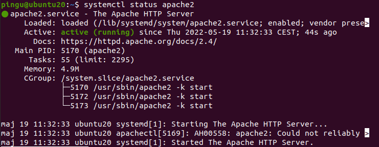 Resetujemy działanie Apach2 poleceniem: sudo service apache2 restart